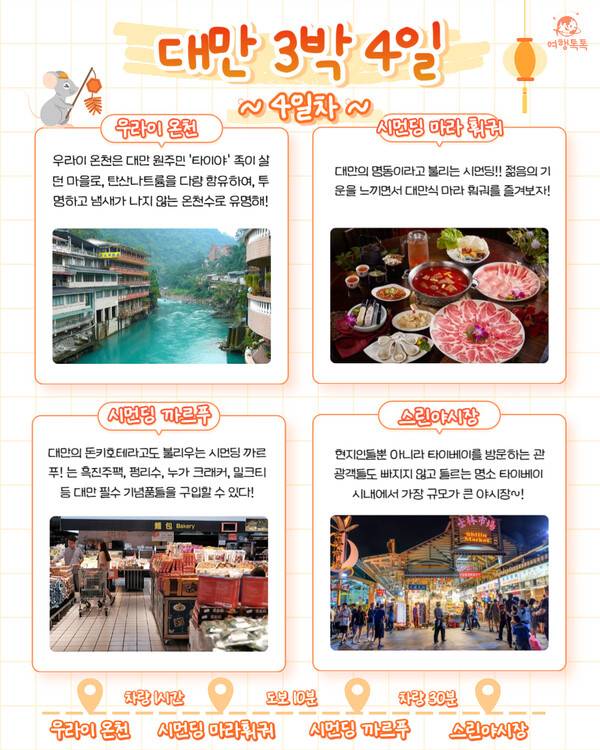 우라이 온천 - 시먼딩 마라 훠궈 - 시먼딩 까르푸 -스린 야시장