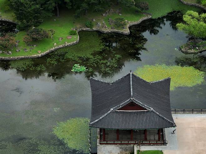 "월지는 신라가 삼국 통일을 이룬 직후인 문무왕 14년(674년)에 황룡사 서남쪽에 조성됐다. 큰 연못 가운데 3개의 섬을 배치하고 북쪽과 동쪽으로는 무산(巫山)을 나타내는 12개 봉우리로 구성된 산을 만들었다. 이것은 동양의 신선사상을 상징한 것이라고 전해진다. 섬과 봉우리에는 아름다운 꽃과 나무를 심고 진귀한 동물을 길렀다는 가장 대표적인 신라의 원지(苑池)다. 5년 후인 679년에는 별궁인 동궁을 건축한다."