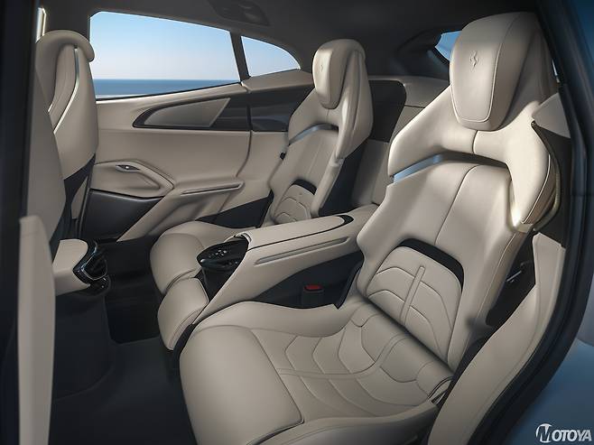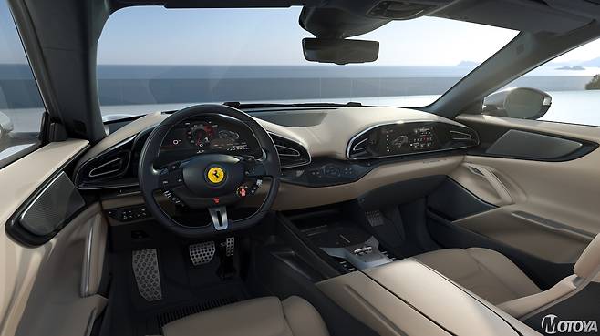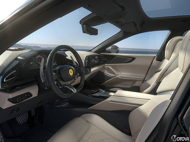푸로산게의 캐빈은 공간과 실내 구성요소 모두를 세심히 설계해야만 했다. 동시에 페라리 4인승 차량에 전례 없는 탑승 공간과 안락함을 제공할 수 있도록 모든 자재도 매우 신중히 선택되어야 했다. 푸로산게의 캐빈은 매우 우아하고 스포티한 라운지처럼 보인다. 문을 열면 의외로 넉넉한 공간이 드러난다. 우아함과 모던함을 동시에 풍기는 세련되고 럭셔리한 인테리어도 놀랍다. 이러한 현대적인 디자인은 페라리의 시그니처 GT 스포츠카가 추구해 온 미학과 조화롭게 연결된다. 사용할 수 있는 공간과 인체 공학 요소를 최적화하기 위해 캐빈의 모든 부분은 의도적으로 콤팩트하게 설계됐다. 운전석은 SF90 스트라달레에서 영감을 받았으며 거의 정확하게 조수석과 대칭을 이루고 있다. 덕분에 조수석에 앉은 사람은 모든 운전 정보를 제공하는 10.2인치 디스플레이를 통해 감정적으로 온전히 몰입할 수 있다. 푸로산게 역시 페라리의 다른 동급 제품군에 이미 채택된 100% 디지털 인터페이스를 갖추고 있다.