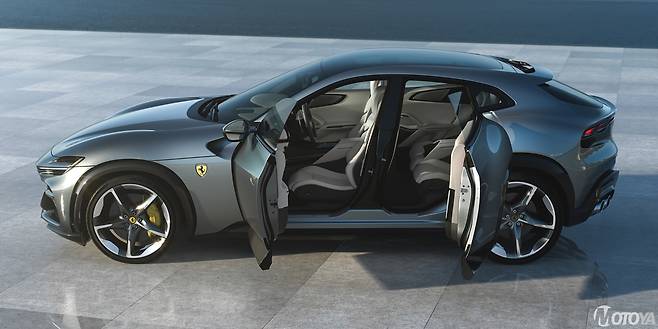 페라리 75년 역사상 최초의 4도어 4인승 차량, 푸로산게(Purosangue)가 라자티고(피사)의 델 실렌치오 극장(Teatro del Silenzio)에서 전격 공개되었다. 페라리는 로드카 사업을 시작했을 초창기부터, 2+2 차량(앞좌석 2개와 뒷좌석 2개)을 중심으로 사업을 전개해 나갔다. 특히 2도어 쿠페형의 차체를 갖는 그란투리스모(Gran Turismo) 모델들은 페라리 로드카의 시작에서부터 오늘에 이르기까지 중추적인 역할을 해 왔고, 지금도 그러하다. 페라리의 2+2 모델들은 레이싱 팀 '스쿠데리아 페라리(Scuderia Ferrari)'의 레이싱카들이 지닌 혈통을 이어 받은 뛰어난 성능을 기초로, 아름다운 외관과 고급스러운 실내, 그리고 편안한 주행감을 고차원적으로 양립하여, 신생 제조사였을 당시부터 많은 사랑을 받아 왔다.