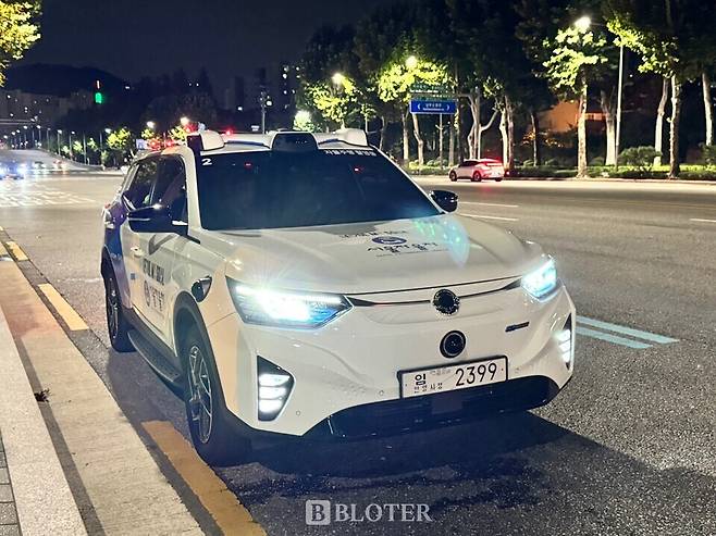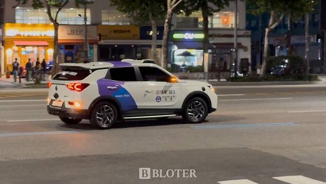 지난달 26일 서울 강남구 일부지역에 투입된 KG모빌리티 코란도EV 기반 심야 자율주행택시는 시민들의 편안한 심야 시간대 이동을 돕고 당분간 무료로 이용할 수 있다. 또 차량 뒤쪽에 승객의 탑승현황등을 나타낼 수 있는 LED 사이니지가 적용된 것이 특징이다.