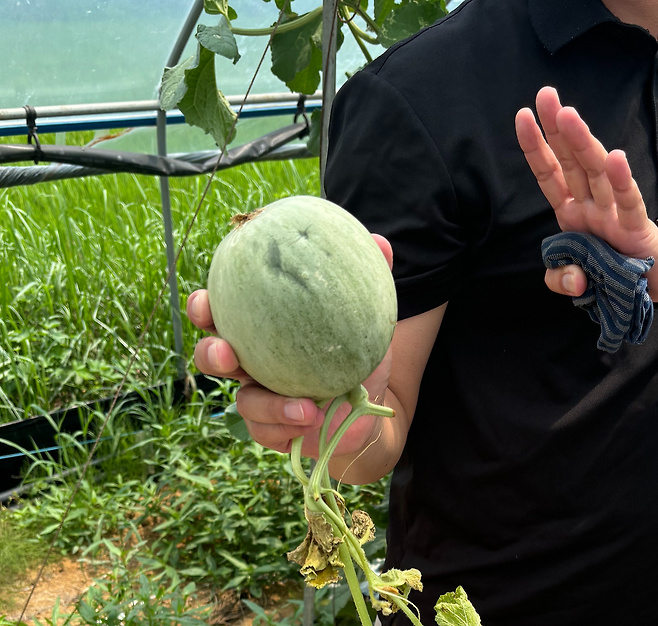 그렇게 생각하면 멜론의 줄무늬가 다르게 보이지 않나요? 뜨거운 여름에도 무럭무럭 자라서 결실을 맺는 수박과 멜론을 보며, 우리 모두 힘내보아요!