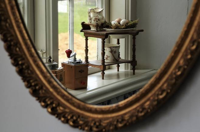 현관 옆 벽 거울에 두면 좋은 기운 확장에 도움이 됩니다. 즉 거울을 두더라도 문 정면은 피하고 옆쪽에 두는 것이 좋아요.
