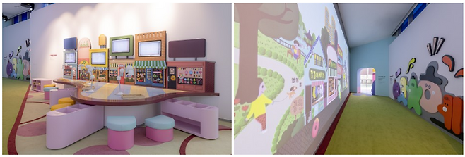 체험관에는 자음과 모음, 생활 단어를 활용한 여러 놀이가 있다. 글자를 조합해 나만의 간판을 만들어 보는 ‘나도 간판 디자이너’ 체험은 특히 교육적이다. 아이들이 실생활에서 자주 보는 채소 가게, 사탕 가게, 과일 가게, 빵 가게 등을 활용해 원하는 대로 단어를 만들어 보기에 창의성을 키울 수 있다. 아이가 만든 간판은 디지털 형식으로 자동 변환돼 맞은편 벽에 영상으로 나타난다.