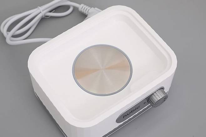 계란 트레이를 제거하면 본체 윗면에 원형의 가열판이 보이는데, 스테인리스 소재를 사용해서 오랜 사용에도 부식이 되지 않기 때문에 위생적인 관리가 가능하다.