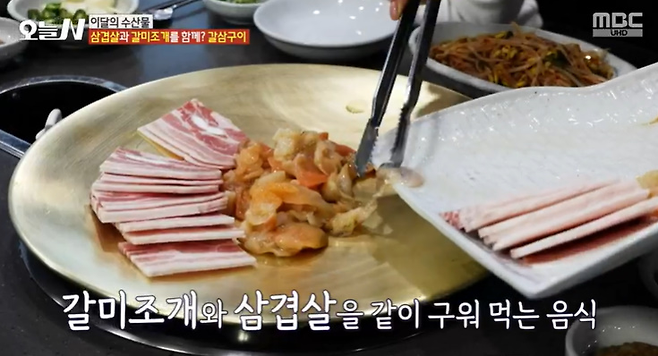삼겹살 기름에 튀기듯 구워 먹는 갈미조개 부산 사람들은 이 갈미조개를 삼겹살과 함께 구워 먹는 방식을 즐긴답니다. 삼겹살을 먼저 구워 고소한 기름을 만들어 두고, 그 위에 갈미조개를 탁 올려서 노릇하게 구워 먹는 거죠. 삼겹살의 풍미와 갈미조개의 쫄깃함이 어우러져 여느 조개구이와는 또 다른 별미를 선사해요. 고소함이 입안 가득 느껴지니 바다의 맛을 제대로 즐길 수 있답니다.