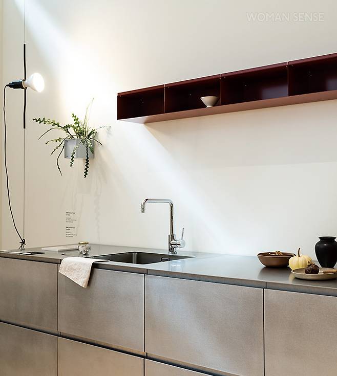 우리나라는 아파트에 사는 사람이 압도적으로 많아요. 똑같은 공간에 똑같은 색을 매칭하죠. 컬러 활용을 망설입니다. 미묘한 색감과 채도 차이에도 분위기가 확 바뀌기 때문에 실패에 대한 두려움이 있는 거예요. 그동안 컬러에 대한 가이드가 전무해 그럴 수밖에 없다고 생각해요. MMK는 브랜드의 상징과도 같은 컬러 시스템을 만들었어요. 모두 자연에서 나온 컬러로 계절을 타지도 않죠. 오랫동안 보아도 질리지 않고, 식재료와도 잘 어우러지는 컬러를 만들었어요. MMK 쇼룸은 A존과 B존, 최근 오픈한 C존까지 3개 영역으로 나뉩니다. 식기와 패브릭 등 주방 오브제를 큐레이션한 A존부터 MMK가 제안하는 4가지 타입의 주방을 만날 수 있는 B존, 새로운 유형의 협업, 컬렉션, 큐레이션을 전개하는 C존까지 다양한 니즈를 충족하기 위해 노력하고 있습니다.