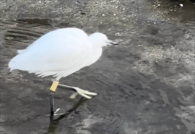 | ▲ 2025년 대전 선화초등학교 번식기 벌목 과정에서 구조된 뒤 방생된 백로 1개체가 지난 3월 17일 선화동 일대에서 노란색 가락지를 부착한 채 발견됐다 |