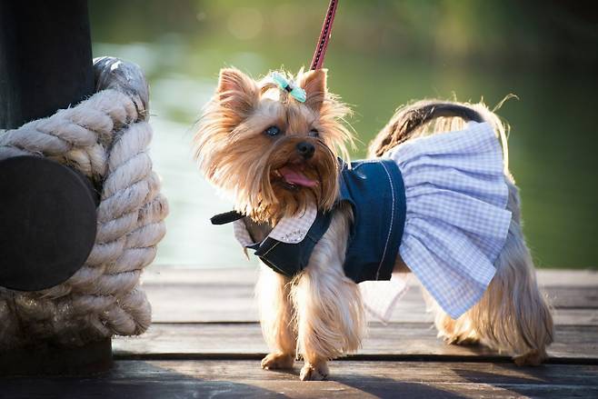 만약 이중모 및 장모종을 견종을 키운다면 원피스 형태의 옷을 한 번 도전해 보세요!