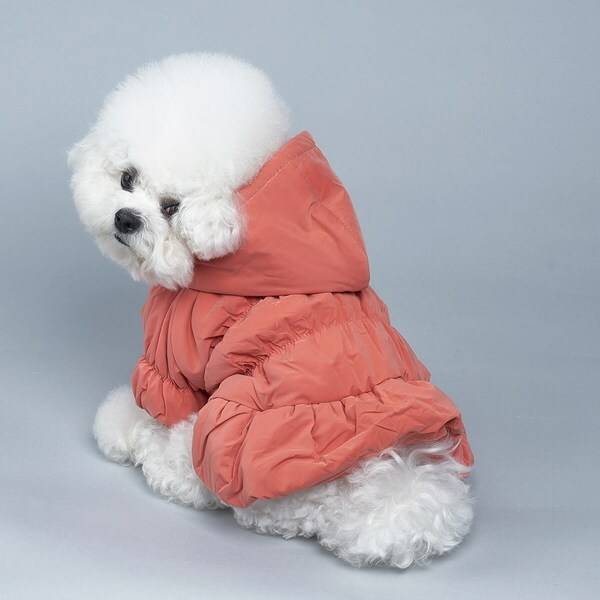 한겨울에 입히기 좋은 원피스 형태의 강아지 패딩이에요. 전체적으로 주름이 잡혀 있어 풍성한 느낌입니다. 안감에 털이 있어 부드럽고 따뜻하다는 게 특징이에요. 패딩 모자를 흘러내리지 않게 고정할 수 있어서 입혔을 때 불편함도 적다고 해요.