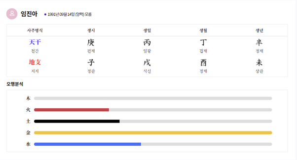 공개된 생년월일이 실제와 다를 경우 결과가 달라질 수 있습니다