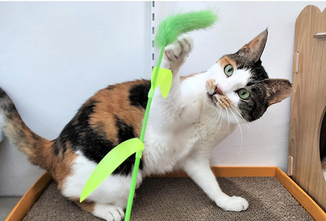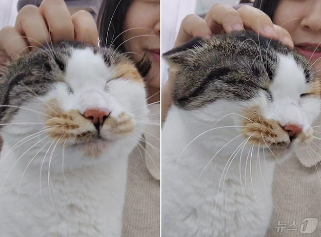 향이는 머리에 살짝 손만 닿아도 물개처럼 귀를 뒤로 젖히고 눈을 지그시 감으며 손길을 즐깁니다. "향이야~" 하고 부르면 "야옹~" 하고 대답하는 사랑스러운 모습도 보입니다.