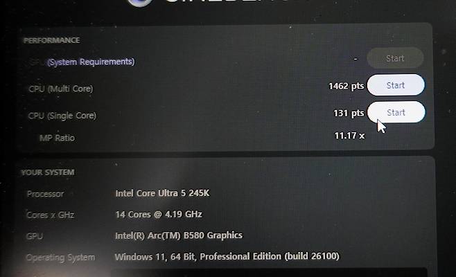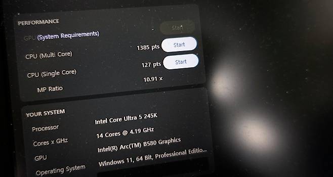 인텔 시리즈2 245k CPU와 인텔 아크 그래픽카드를 이용해서 테스트 진행했습니다.