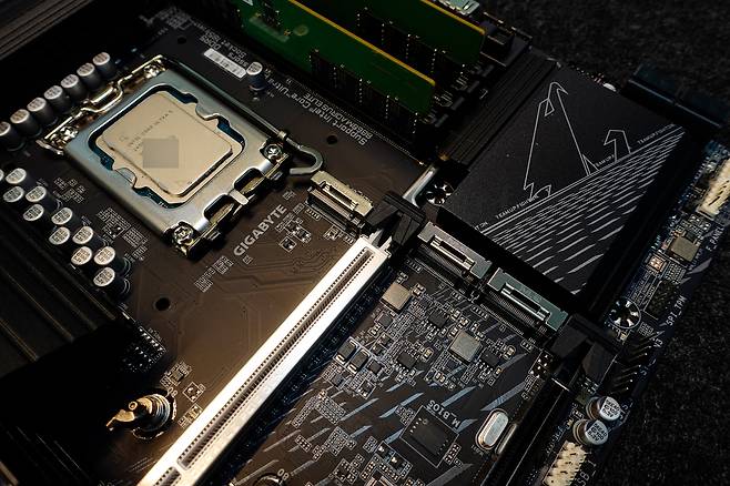 그래픽 슬롯과 M.2 슬롯 PCIe 5.0 지원, M.2 슬롯 3개 지원까지 현재 대부분의 상위 PC 모듈 부분과의 호환성도 좋습니다.