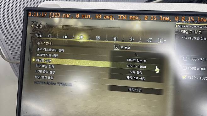 몬스터헌터 라이즈 FHD 해상도로 테스트 진행