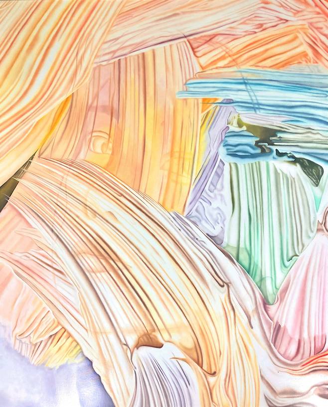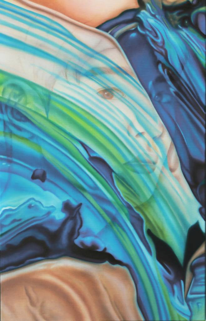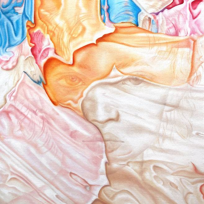 인물의 눈, 입, 혹은 얼굴의 일부가 물결치는 듯한 색채와 패턴의 속에 녹아들어 인물과 배경 간의 경계를 흐리게 하며, 관찰자로 하여금 인물과 추상적 요소들 사이의 상호작용을 탐색하도록 유도한다.