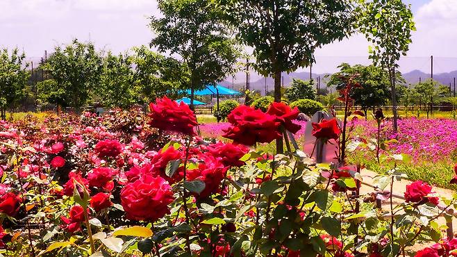 특히 장미는 붉고 노란 색상이 어우러져 정원을 한층 풍성하게 만들고, 은은한 향기까지 더해져 오감을 자극한다.