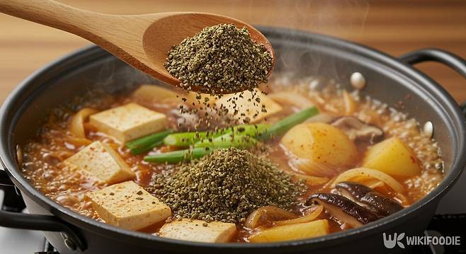 된장찌개에 들깨가루를 넣는 시점은 '가장 마지막'이다. 모든 재료가 익고 국물 맛이 충분히 우러났을 때, 들깨가루를 넣고 살짝만 더 끓이면 된다. 너무 오래 끓이면 들깨 향이 날아가고, 덩어리질 수 있으니 주의해야 한다.
