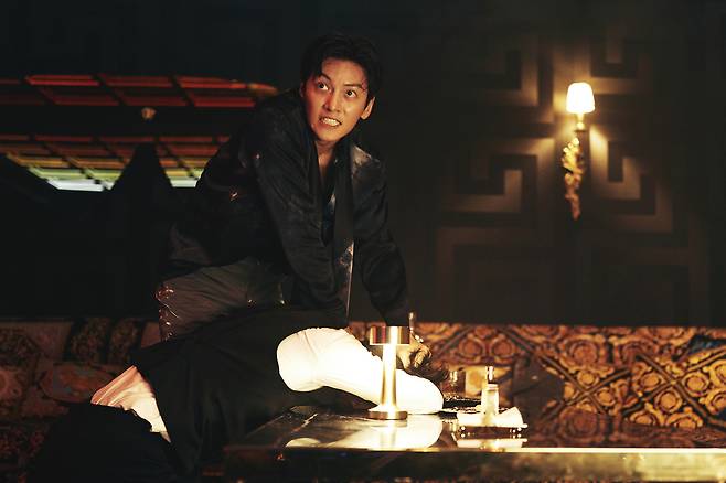 8월 7일 개봉을 앞둔 영화 <리볼버>가 향수 뿌린 미친개 앤디로 파격 변신한 지창욱의 캐릭터 스틸을 공개했다.