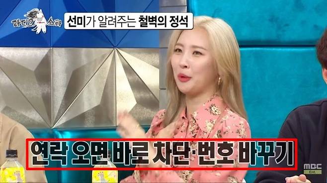 선미는 MBC '라디오스타'에 출연해 자타 공인 연예계 철벽녀에 등극한 사연을 털어놓았습니다. 선미는 평소 지인들을 통해 동료들이 연락해 오는 경우가 있다고 고백했는데요. 그럴 때마다 휴대전화의 번호를 바꿔버리는 철벽을 친다고 합니다. 그럼에도 불구하고 지인을 통해 끈질기게 연락을 해온 사람에게는 '나 결혼할 사람이 있다고 전해줘'라며 파격적인 거절 멘트를 날리기도 했는데요. 그뿐만 아니라 선미는 SNS의 메시지를 통해 연락이 오면 계정을 차단하는 등 완벽한 철벽 스킬을 공개했습니다.