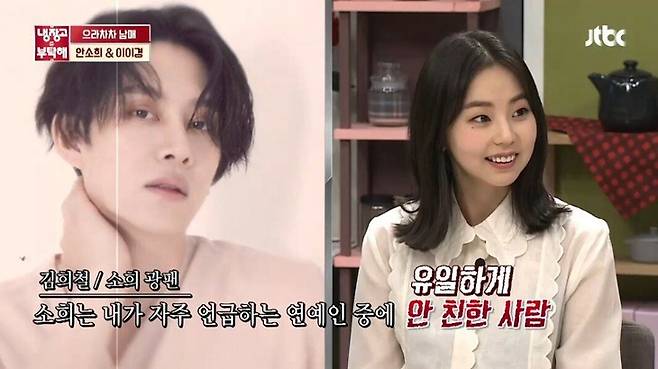 이에 대해 소희는 진짜 문자 확인을 늦게 한 것이라며 미안한 마음을 드러냈는데요. 이에 이이경은 차라리 새 다리에 묶어서 보내는 게 더 빠를 것 같다는 농담으로 서운함을 드러냈습니다. 다만 이이경이 그다지 서운할 필요가 없는 이유가 있는데요. 소희가 연예계 마당발로 알려진 김희철조차 '소희는 내가 자주 언급하는 연예인 중에 유일하게 안 친한 사람'이라고 할 정도로 낯가림이 심하게 때문이지요.