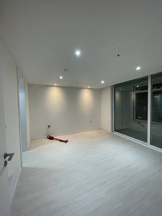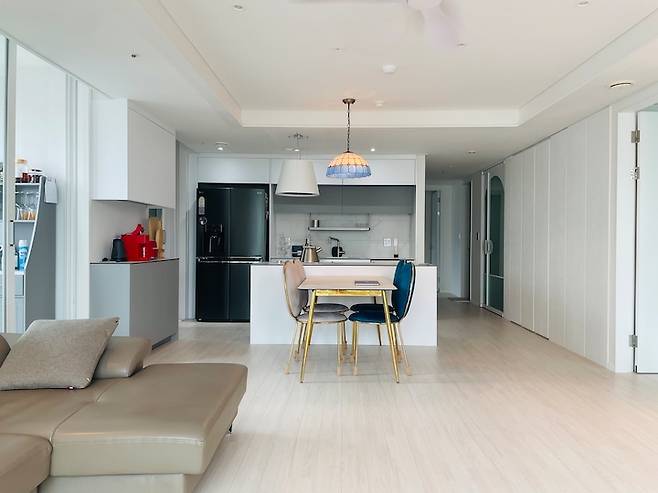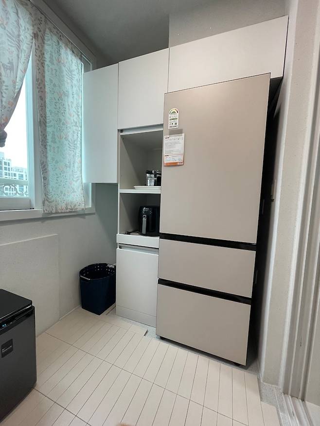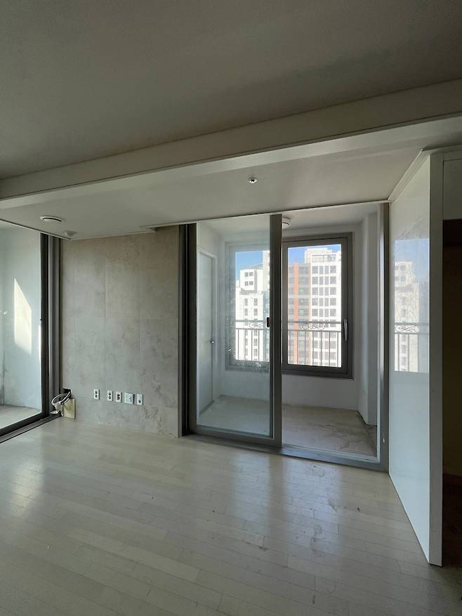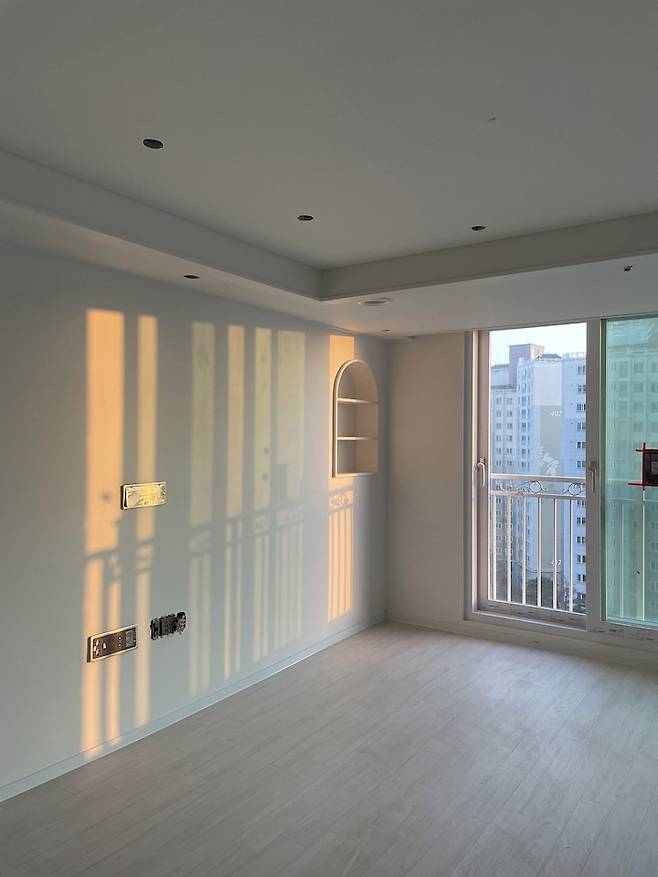 이 집의 가장 큰 특징은 오른쪽에 미니 베란다가 하나 더 있다는 점이었어요. 해가 잘 들고 통풍도 잘 돼서 확장해서 홈카페로 만들고 싶었지만, 예산이 초과돼서 어쩔 수 없이 확장은 하지 않기로 했어요 ㅠ.ㅠ 그리고 오른쪽에 투박하고 큰 냉장고장도 철거했답니다.