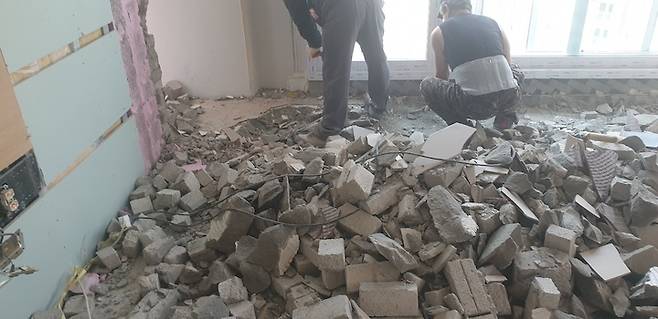 드디어 베란다 가벽을 부쉈어요, 이때 소음이 엄청나서 주변 분들께 민폐가 장난 아니었습니다 ㅠ.ㅠ 가벽을 부수고 창을 교체하고, 확장의 가장 중요한 단열!을 진행했어요.