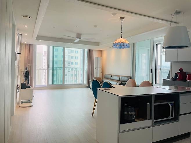 사실 단점은 적잖이 있었어요. 1) 비확장으로 30평대인데도 매우 좁아 보였고, 2) 집주인 분이 투자용으로 사서 전세만 돌리셨기 때문에 집에 투자가 전혀 되어있지 않았어요. 3) 리모델링을 하지 않으면 사용할 수 없었던 가스레인지, 벽면, 바닥, 아일랜드 식탁 등등...