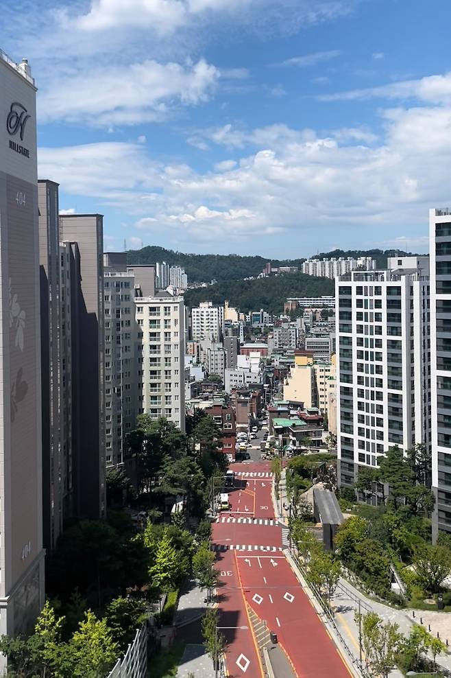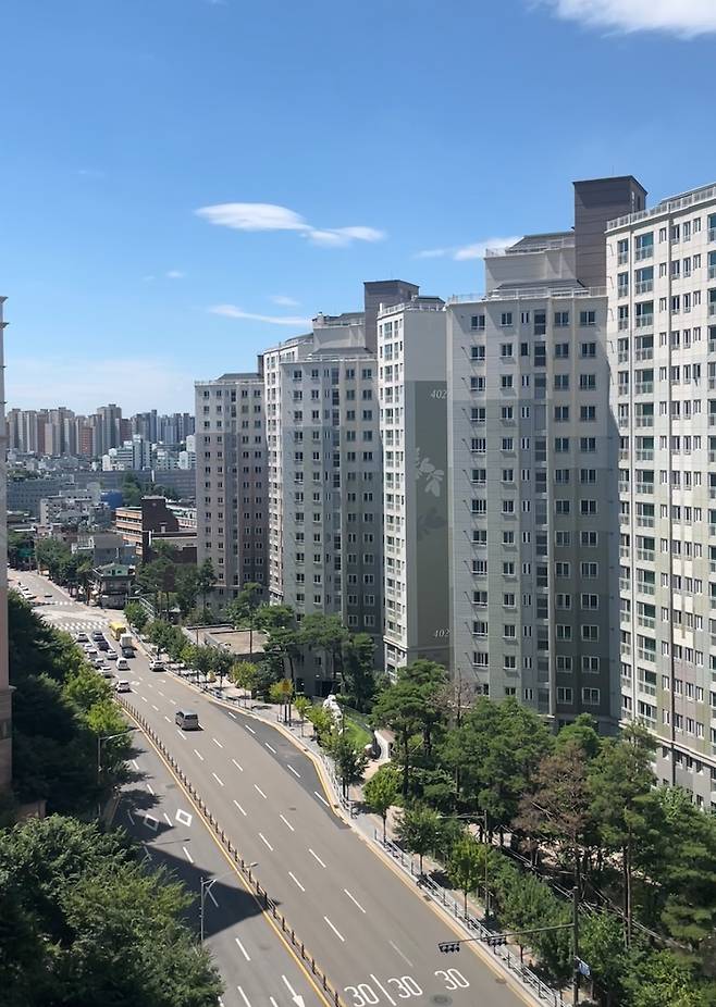 도로변에 바로 붙어있는 아파트긴 하지만 개인적으로 뷰가 뚫린 걸 선호해서 길게 뻗은 도로가 T자 모양으로 보이는 뷰가 마음에 들었어요 :)