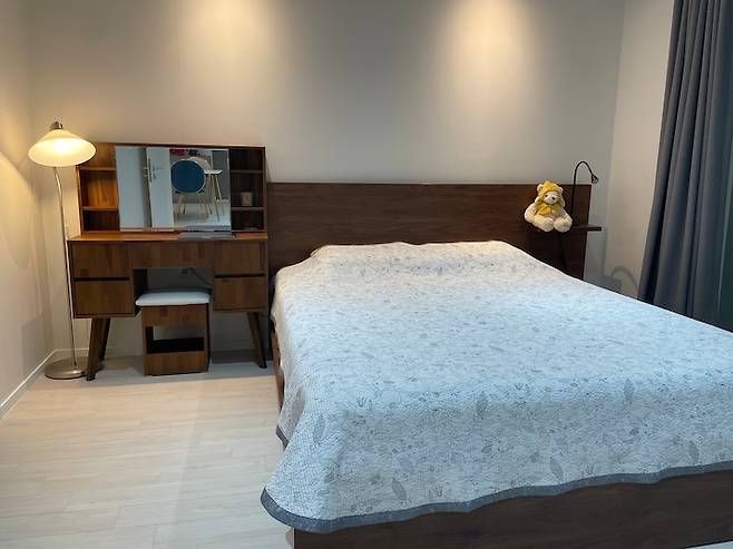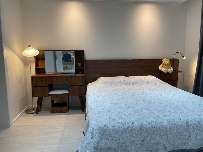 짜잔 완성되었어요! 침실은 따뜻하고 포근한 느낌을 주고 싶어서 원목 가구들을 배치했어요. 침대와 화장대는 같은 브랜드가 아닌데 최대한 색감을 맞췄더니 같은 브랜드 제품 같아서 좋아요 :)