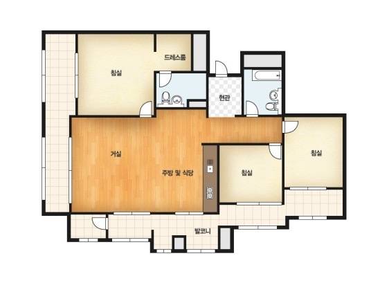 저희 집 도면부터 보여드립니다. 대면형 주방에 베란다가 6개나 있는 비확장형 집이었답니다 ㅎㅎ 대면형 주방과 창이 많은 집을 원했던 제가 첫눈에 반했던 이유지요. 비록 콩깍지 때문에 보지 못했던 많은 전세 10년의 흔적들이 여기저기 있었지만... 어차피 올리모델링을 생각했던 터라 그런 부분은 중요하지 않아 구매를 결정하게 되었답니다 :)