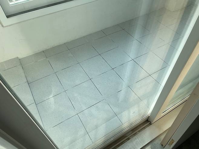 지저분했던 베란다 타일을 새로운 타일로 바꾼 모습이에요 :) 아직 줄눈 작업 전인 사진인데 반듯한 모양이 마음이 편안해져요ㅎㅎ