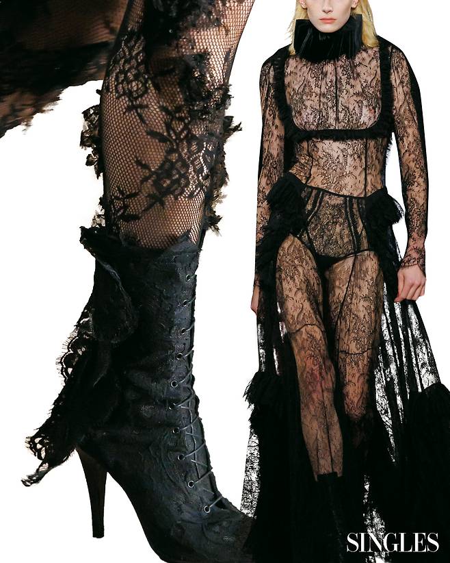 마침내 음울하고도 매혹적인 세계가 열렸다. 파리 패션위크에서는 디올과 맥퀸이 트렌드를 주도했다. 빅토리아 시대로 둔갑한 무대 위 우아한 고딕 판타지가 펼쳐졌다. 그리고 그 중심에서 일렁인 ‘블랙 레이스’. 모델켄들 제너가 오스카 시상식에서 한차례 선보인 뮈글러의 빈티지 피스처럼 블랙 레이스는 전신을 덮거나 옷의 가장자리를 파고들거나 또 액세서리 곳곳을 장식하며 유연하게 제 역할을 해냈다.