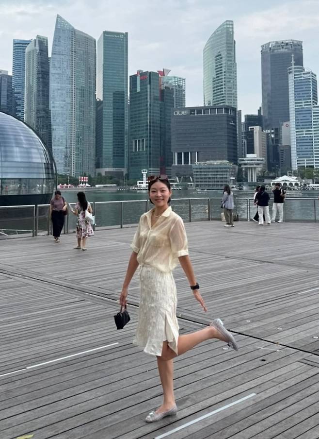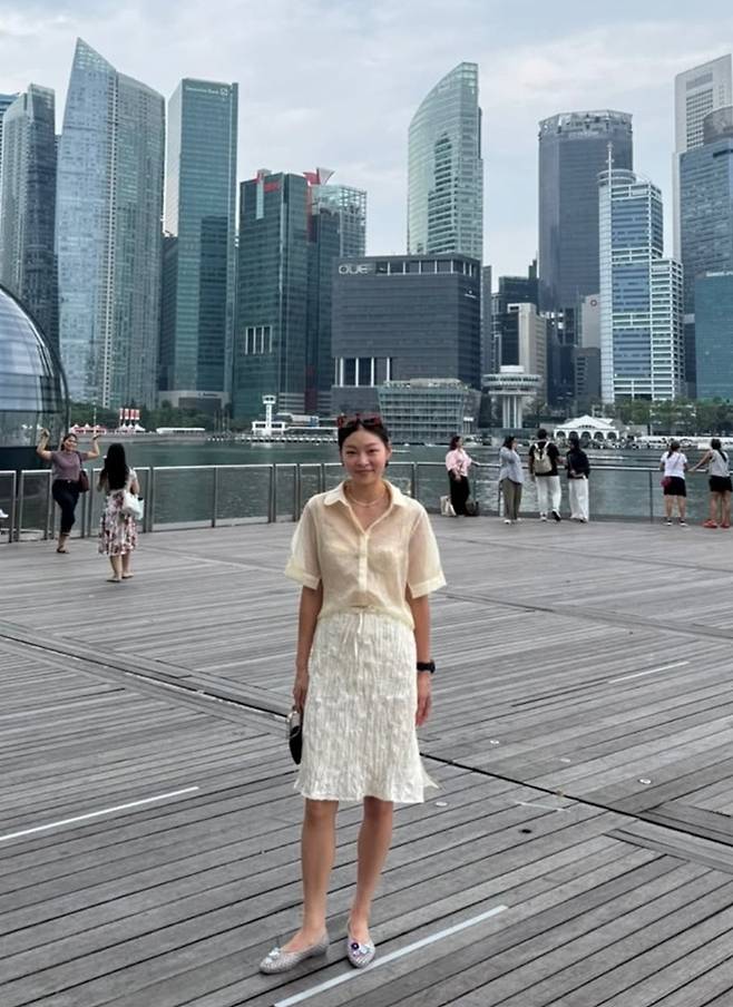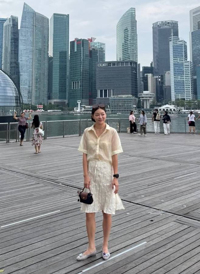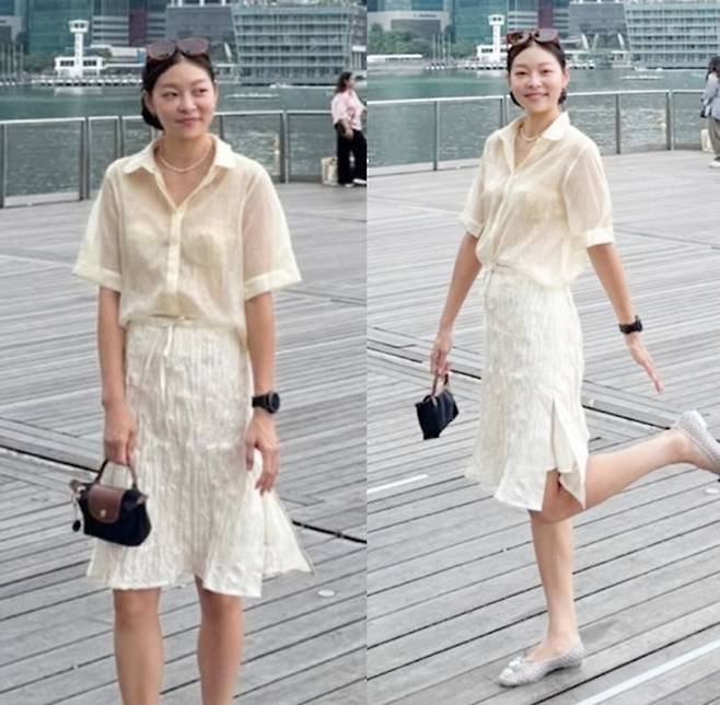 모델 겸 방송인 송해나가 싱가포르에서 아이보리 시스루 톤온톤 스타일로 여유로운 여행을 만끽했다.