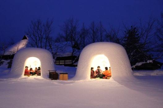 어두운 밤 주황빛이 켜지는 움집 가마쿠라는 떼를 이뤄 환상적인 절경을 만들어 냅니다. 내부에 들어가면 아이들과 함께 시간을 보내는데 마치 동화 속 한 장면같아 올 겨울 추천드리는 일본 여행지입니다.