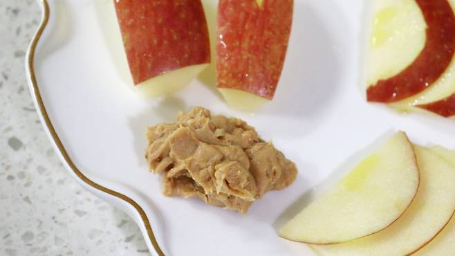 바로 땅콩버터인데요, 사과와 땅콩버터를 함께 먹으면 노화 방지 효과와 혈당의 급격한 상승을 막고, 혈관 관리까지 할 수 있어요.