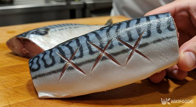 첫 단계는 고등어 손질이다. 노르웨이산 고등어를 사용하면 기름기가 적당하고 고소한 맛이 잘 살아난다. 꽁지를 잘라내고 몸통을 반으로 자른 뒤, 척추 중심 가시만 한 번씩 끊어준다. 껍질 쪽에는 사선으로 세 군데 정도 가볍게 칼집을 낸다. 구울 때 껍질이 들뜨거나 말리는 걸 막아준다.
