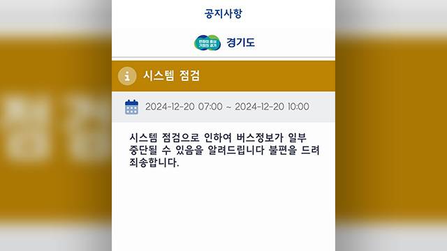 이어 화면에 '오전 7시부터 10시까지 시스템 점검으로 버스 정보가 일부 중단된다'는 알림을 올리고 복구에 나섰습니다.