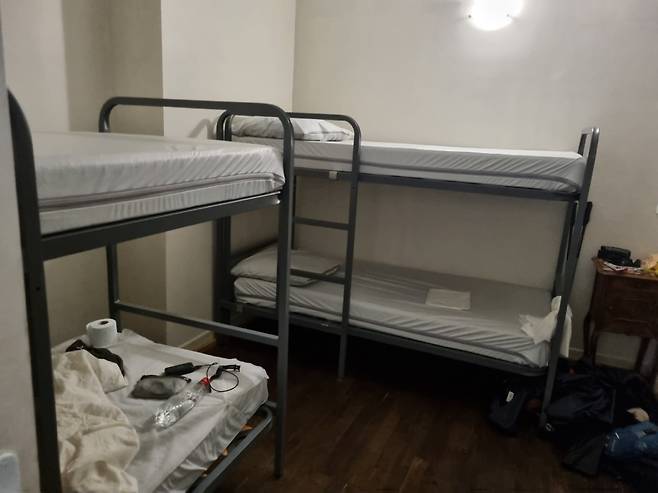 손님들 전부 한방에 숙박했던 팔라스데레이 사설알베르게. 이럴 경우 여유분의 침대 몇개를 그냥 주기도 한다