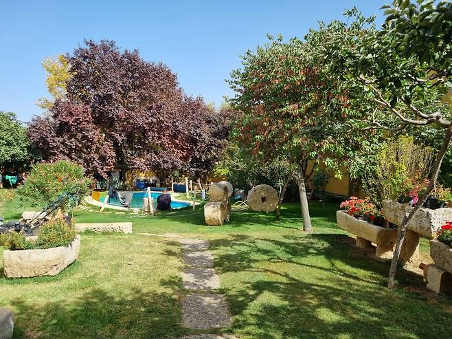 와이파이도 데이터도 안되는 메세타 한가운데 위치한 보아디야 델 까미노에 위치한 알베르게. 열악한 시설이지만 아름다운 정원덕에 힐링했던 곳