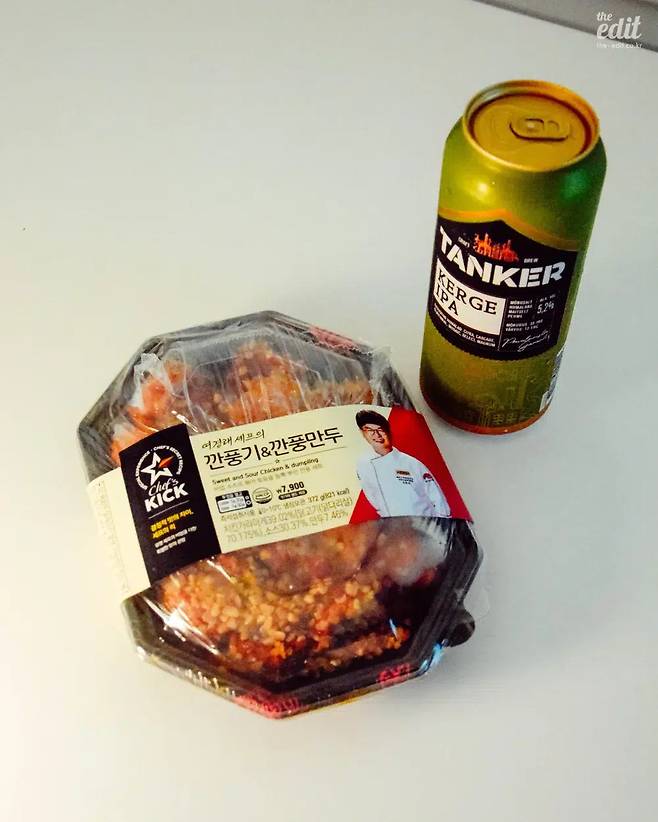 이제 술은 골랐고… 잘 어울리는 안주를 골라볼까- 할 때 눈에 띄는 ‘셰프의킥’. 맛집? 줄 안 서도 유명하고 인기 있는 셰프님들이 다 말아주신다. 특히 여경래 셰프의 ‘깐풍기&깐풍만두’가 탱커IPA와 잘 어울린다. 달콤하고 꽤 매콤한 맛을 맥주가 산뜻하게 잡아주기 때문! 사실 편의점 음식치고 퀄리티 자체가 매우 훌륭한 편이다. 편의점 음식이라면 보통 따뜻하게 데워먹어야 제맛이지만, 깐풍만두는 차갑게 먹었을 때 오히려 탱커IPA와 향미를 이루면서 매운맛을 깔끔하게 정리해준다. 혼술이란 자고로 혼자 청승 떨어도 초라해 보이지 않아야 오래 즐길 수 있는데, 음식이 훌륭해 특히 만족스러울 페어링!