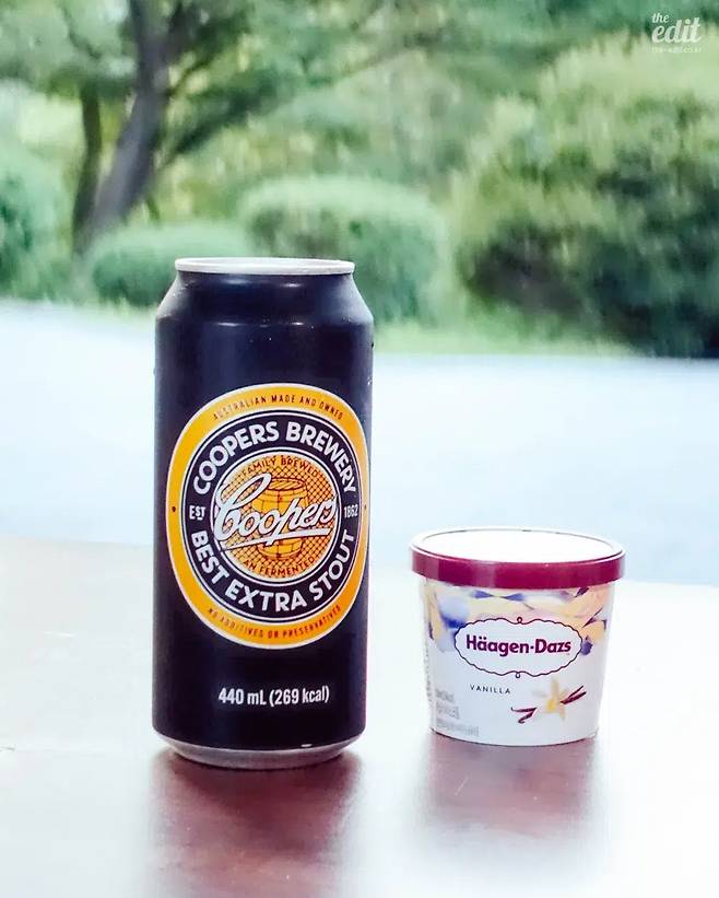 편의점에서도 ‘맥주 플로트’를 만들 수 있다. 맥주 플로트는 아포가토의 알코올 버전이라고 생각하면 쉽다. 바닐라 아이스크림 위에 에스프레소를 부어주듯, 천천히 맥주를 부어주면 된다. 커피 대신 쌉쌀한 흑맥주가 감싸주는 매력이 포인트! 가장 클래식한 버전이 스타우트나 포터 같은 흑맥주다. 편의점 맥주로는 쿠퍼스 스타우트나 코젤 다크를 추천한다.