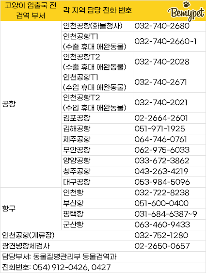 - 검역 증명서(공항 내 농림축산검역본부에서 당일 발급)