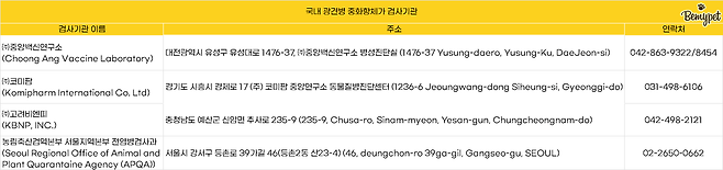 만약 외국에서 고양이 광견병 항체가 생겼는지 확인하려면, 국제공인 검사기관에 따로 의뢰해 검사해야 합니다.