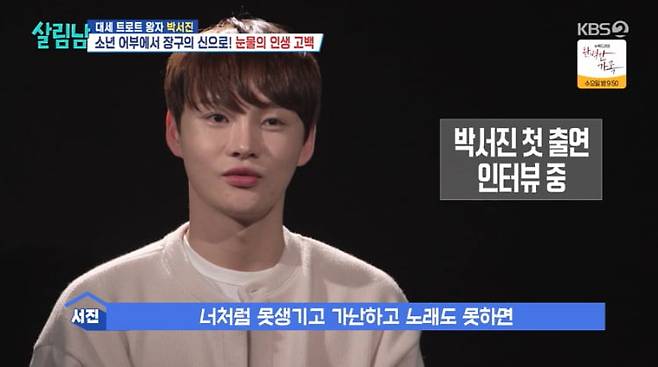 17일 방송된 KBS 2TV '살림하는 남자들 시즌2'(이하 '살림남')에서는 박서진이 동생 효정과 함께 인생 그래프를 그리며 과거를 회상했다.