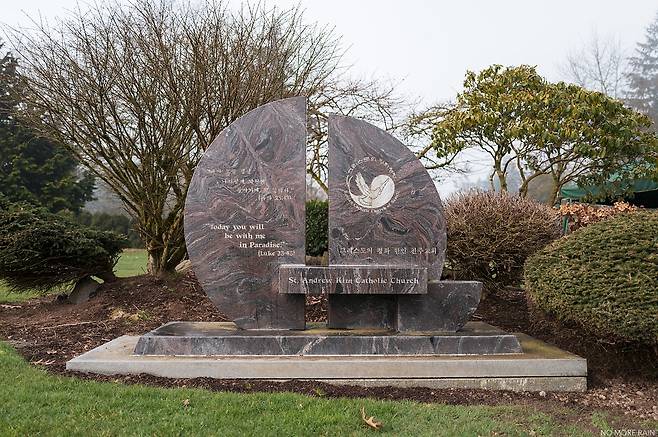 미국묘지이지만 한인성당에서 공동으로 묘부지를 일부 영입해서 천주교 신자들이 같이 묻히게 해놨습니다..