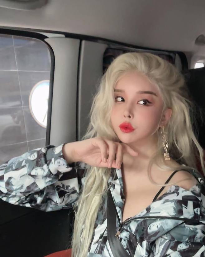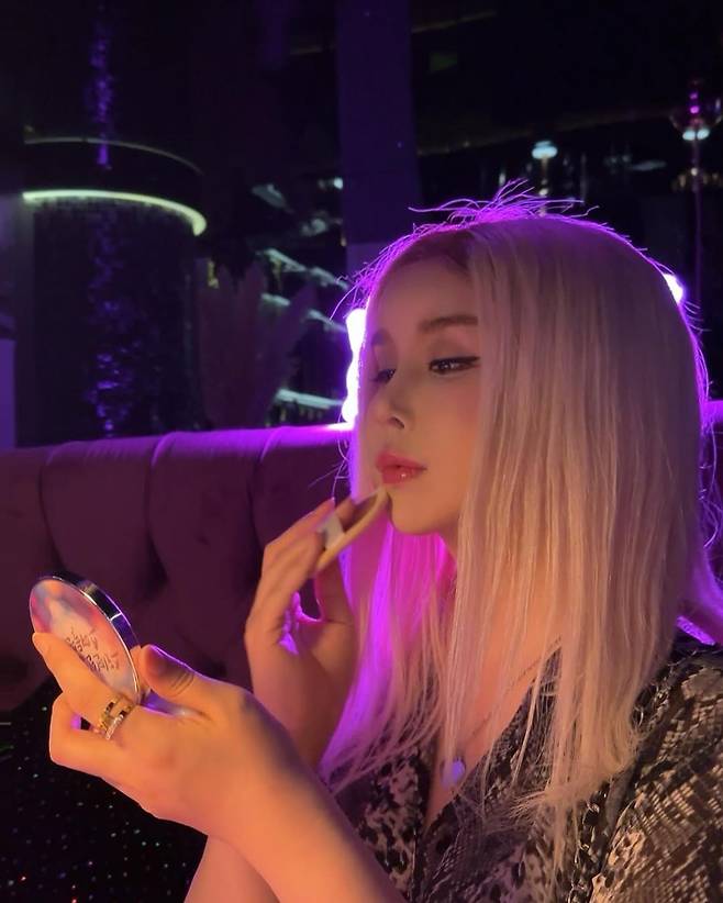 얼마전엔 애쉬핑크 염색 + 생머리 조합으로 등장해서 화제였었고요.