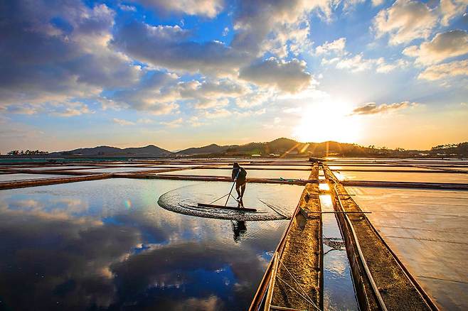 동주염전은 1953년 백범기에 의해 개설된 천일염전입니다. 소금 생산이 활발하던 시기 8개의 작업반이 모두 운영되었지만, 수입자유화 조치가 이루어지면서 현재 염전을 임대하거나 개별적으로 소금을 생산하는 방식으로 운영되고 있습니다.