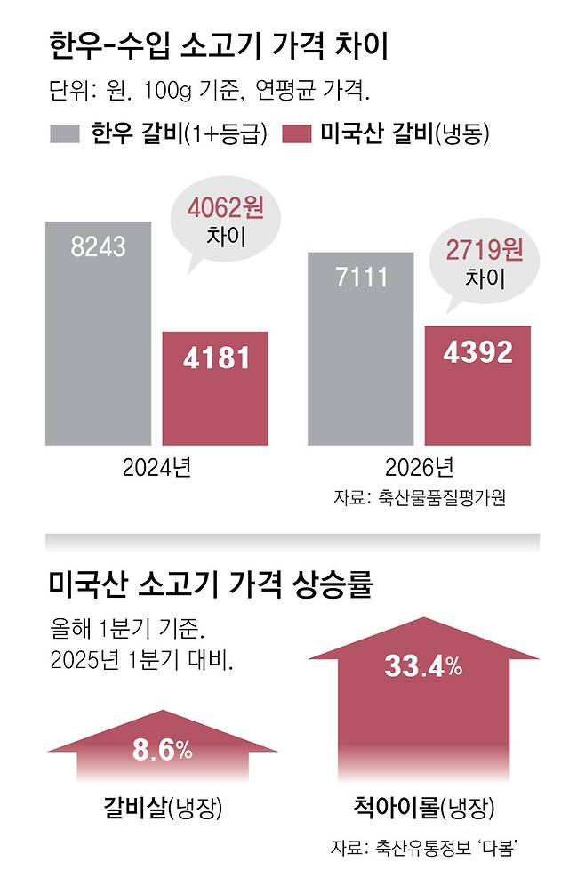 전쟁 불똥 맞은 美소고기 값, 한우와 차이 4062원→2719원