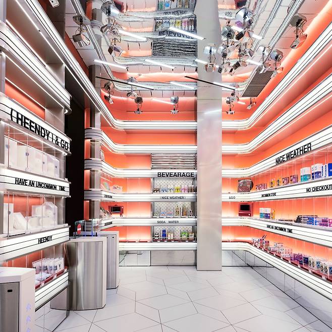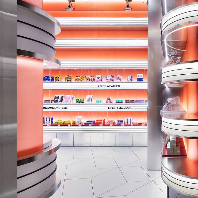 언커먼스토어는 60년대 레트로 퓨처리즘을 반영했다. TV 브라운관처럼, 공간 전체는 60년대 레트로 디자인의 시그니처 요소인 '띠'를 두르는 조형 원리가 적용됐다. 산업 소재인 아크릴과 금속을 사용해 미래지향적인 느낌을 주면서도 과거의 감성을 재조명해 색다름을 주었다.